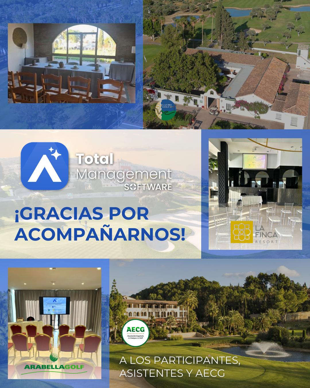 jornadas presenciales de presentación de su plataforma Total Management, reuniendo a gerentes y responsables de campos de golf en Lauro Golf (Málaga), La Finca Resort (Alicante) y Arabella Golf (Mallorca).